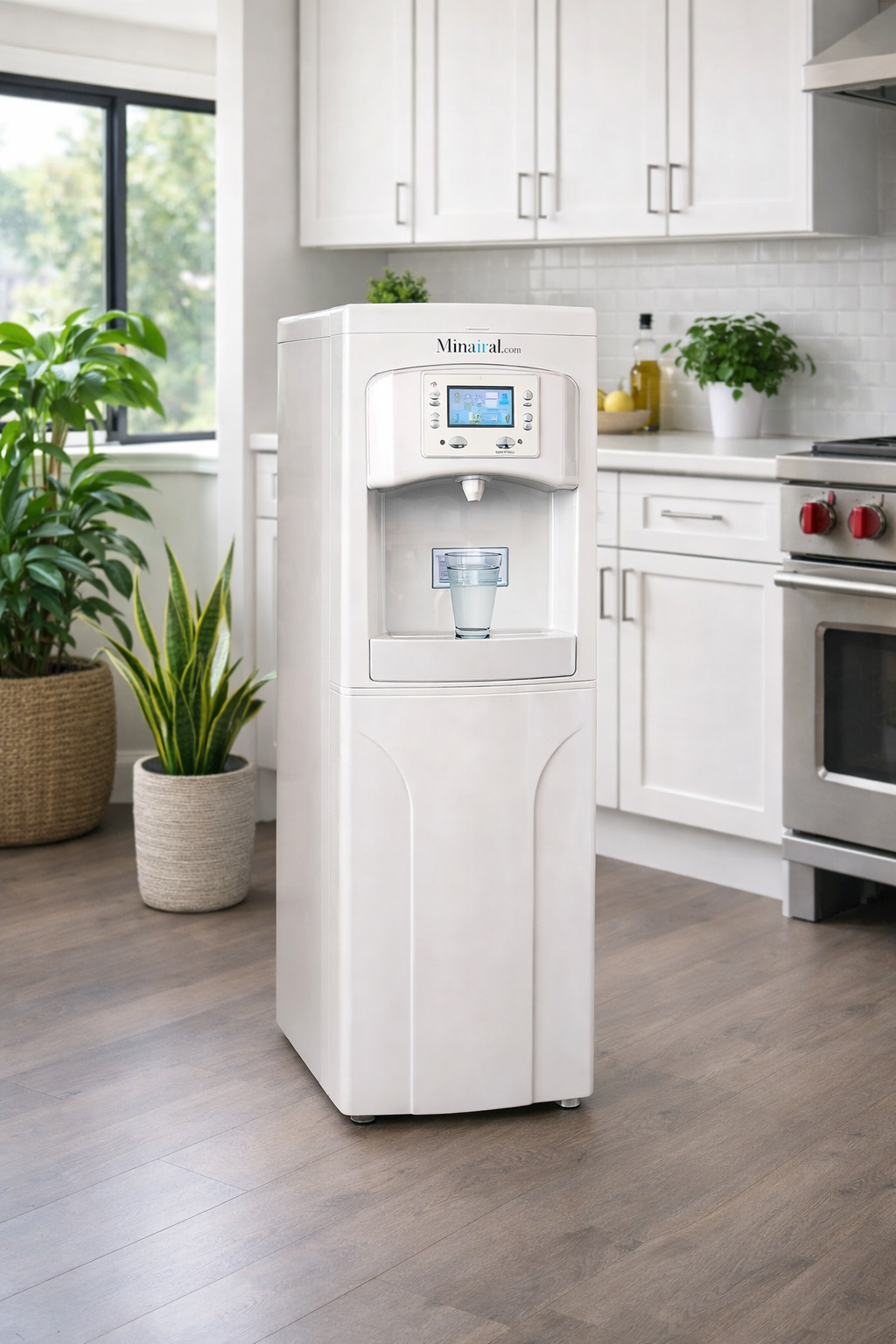 The water is purified, mineralized, and stored automatically, providing a continuous source of clean water at home once the system is installed.